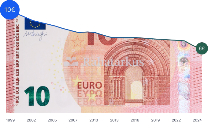 Kas teadsid, et 10 € väärtus 1999. aastal on täna vaid 6 €?