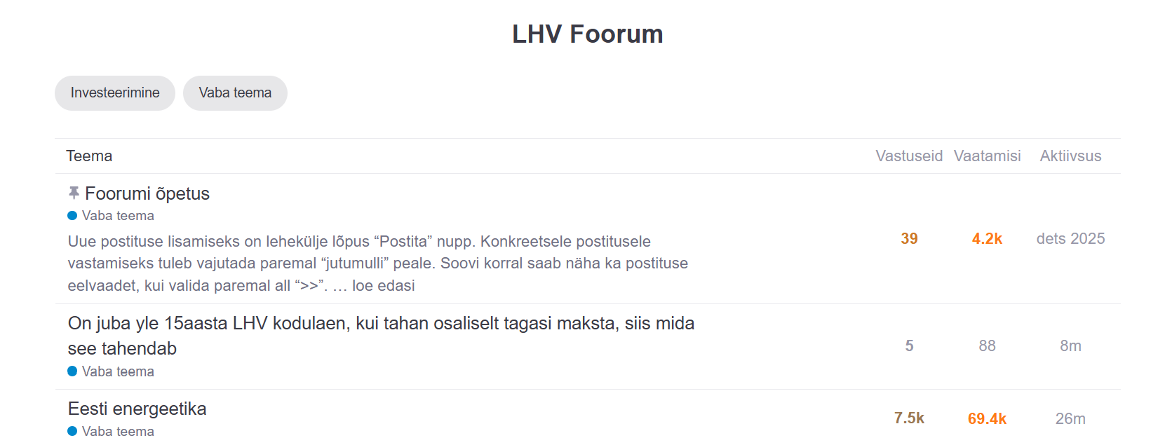Põhjalik Eesti foorum, mis pakub süsteemset ülevaadet Balti börsi ettevõtetest ja globaalsetest turgudest. Erinevalt sotsiaalmeedia voost on arutelud jaotatud konkreetsete teemade kaupa, võimaldades jälgida ettevõtete käekäiku ja majandusanalüüse pika aja vältel.
